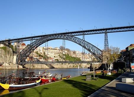 Porto's iconic bridge opened in 1886, when it held the record for the longest iron arch in the world. Today the metro crosses the upper level, while the lower level is used by cars and pedestrians to cross the river between the center of Porto and the spectacular city views and port wine warehouses of the municipality of Vila Nova de Gaia. There are four other bridges in the city, best seen on a Douro River cruise. The most famous of all is the impressive Dona Maria Pia Bridge, also an iron railway bridge, completed in 1876. Designed by Gustave Eiffel before he built the famous Paris tower, and named after King Luis I's wife, it held the world record for the largest span for seven years. It remained in service until 1991 but today it stands as a national monument (it has also been designated an "International Historic Civil Engineering Landmark" by the American Society of Civil Engineers). The other bridges are Ponte do Infante (whose central 280-meter reinforced concrete arch is the world's longest), the triple-arched Ponte de São João, and Arrabida Bridge - the least attractive of the city's bridges, but representing a mean feat of engineering: spanning 270 meters, and supported by a single arch. It was the largest reinforced concrete bridge when inaugurated in 1963.